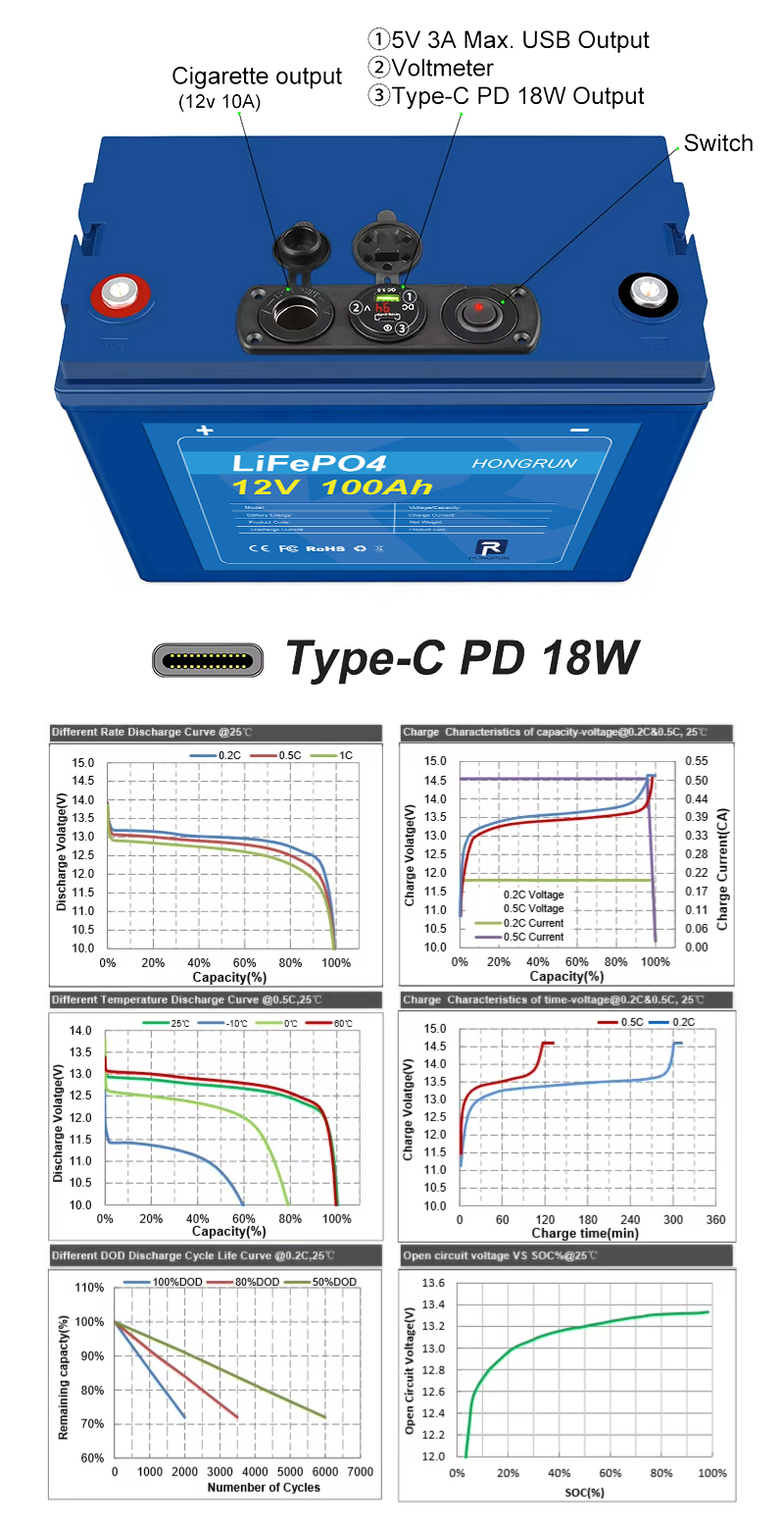 Product name:12.8V 100Ah LiFePO4 Battery with Control switch